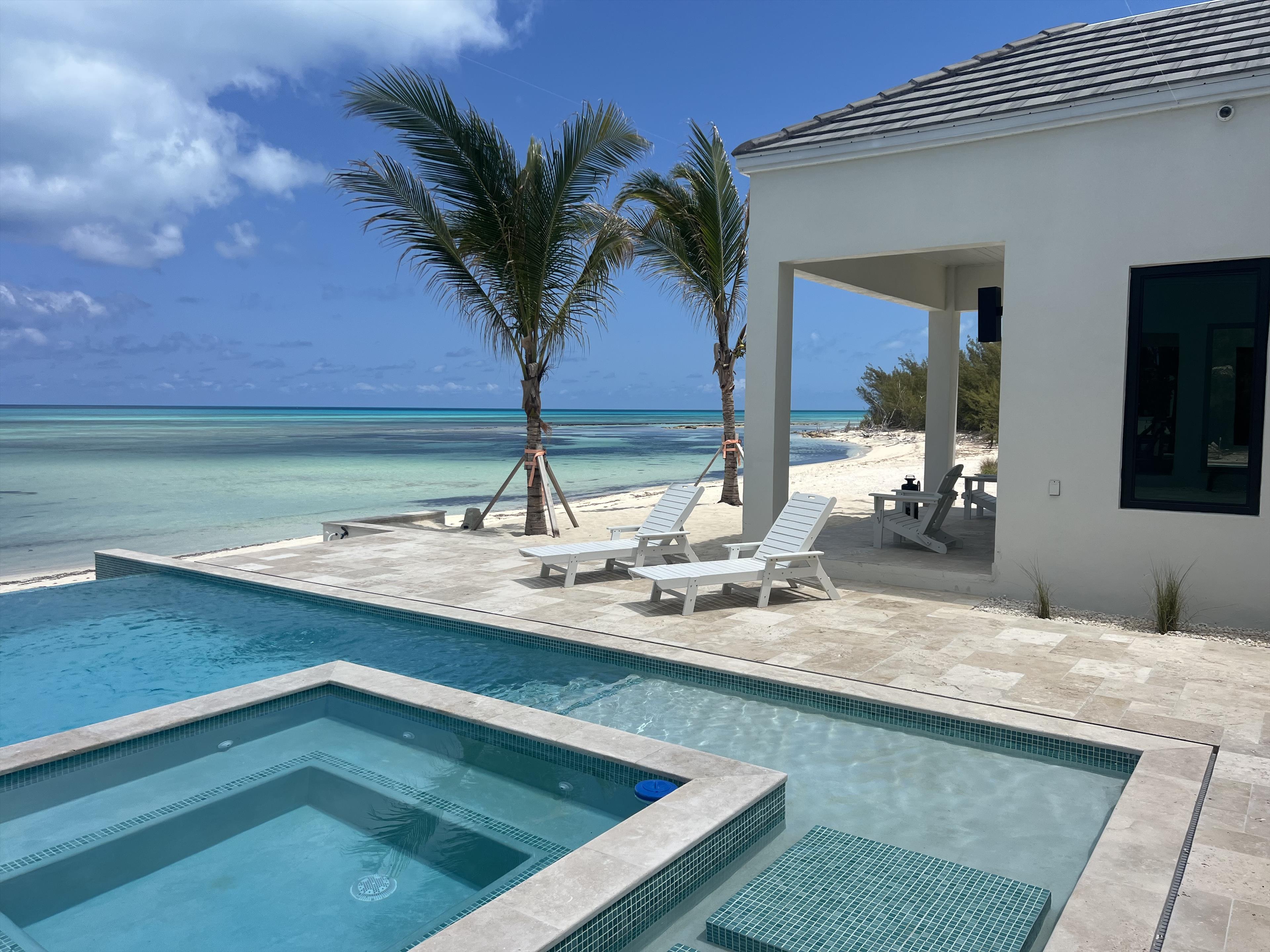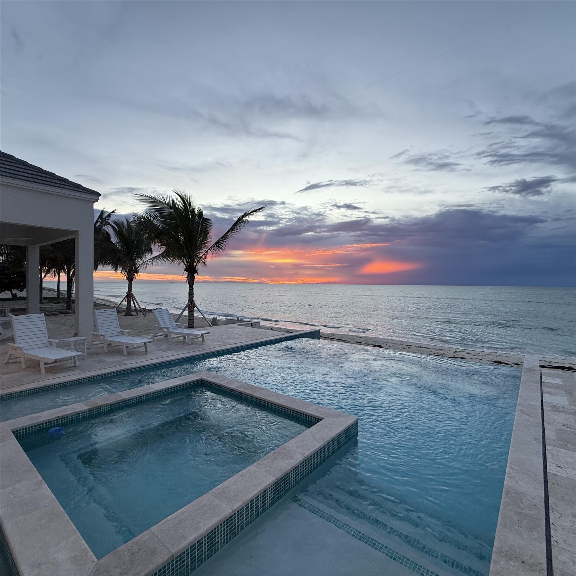 Our pool is an Infinity edge pool (20'x33.3'), Jacuzzi (10'x10'), Pool area bathroom, exterior pool shower overlooking ocean, (6) pool lounge chairs, (10) chairs, Restoration Hardware couch and chair, and BBQ area.