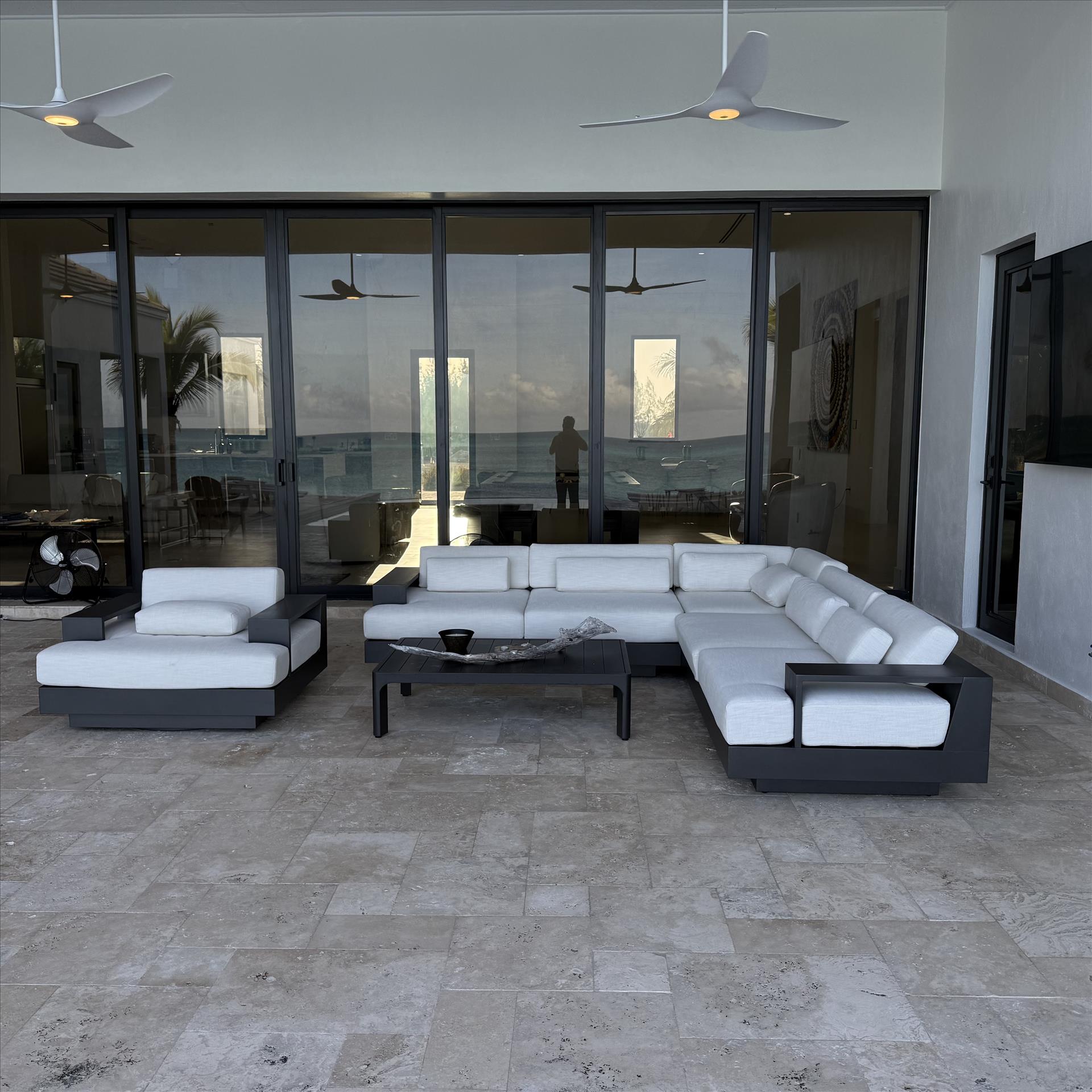 The Center Area of Estate consists of our dining area consists of a 110" Arhaus 'Petra' Dining table w/10 Anima Domus Italian leather chairs, our billiard area of The Alta 8' Slate Pool Table in marble grey finish by American Heritage Billiards. It's a perfect combination of modern design and professional performance. Its sleek, minimalist design and versatile features make it a standout centerpiece for our contemporary home. The 1-inch, 3-piece certified slate playing surface, K66 premier cushion rubber, and internal drop pockets. The black matte diamond rail sights. The Alta is as versatile as it is stylish. Has a dining top to seamlessly transform your pool table into a dining or entertaining surface. Paired with matching benches for a cohesive and functional setup. It is also paired with a ping pong tabletop for a fun game of ping Pong. Finally, our Italian leather Anima Domus 'Gamma' made sofa with Anima Domus coffee table.