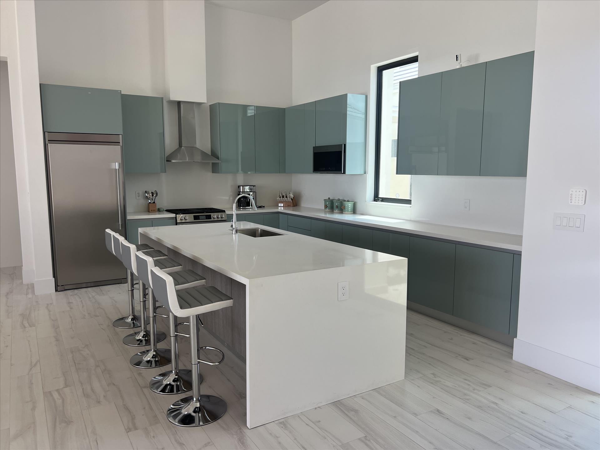 The Kitchen is Fully equipped for all your cooking needs and features all new stainless-steel appliances. Frigidaire select refrigerator, Dishwasher, microwave, oven/cooktop, undercounter freezer, and undercounter wine fridge.